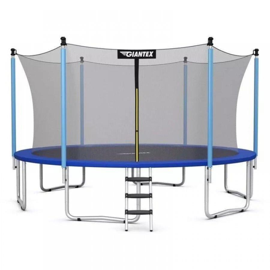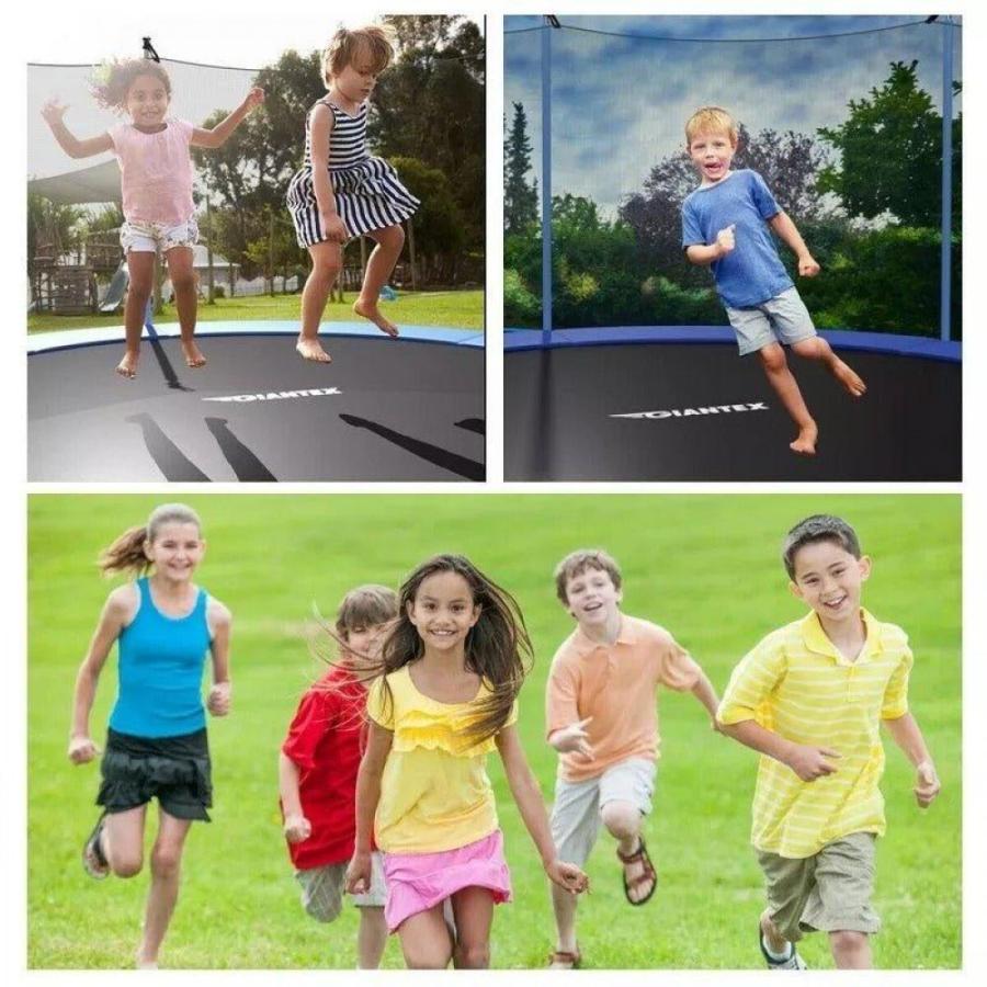 - Wide Range of Application: This 14ft bounce trampoline with enclosure net not only is ideal for both adults and children but also fits with various family activities outdoors and indoors. The kids can play with their friends together to increase their sports skills for better growth. And adults can reduce stress after interesting bouncing and endless fun. Besides, the attached steel ladder with an anti-slipping design facilitates the players to get in and out at any time.
