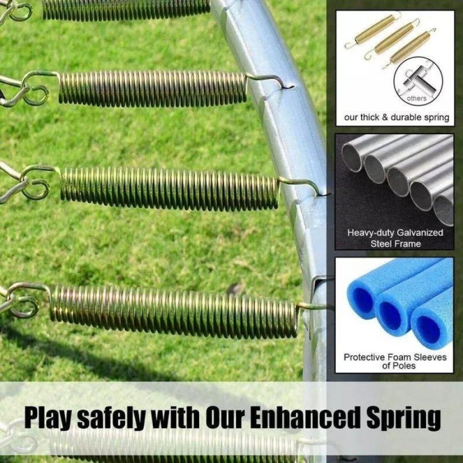 - Safety Enclosure & Zipper Design: 96 Robust galvanized springs securely attach the tightly woven jumping mat and frame together. Superior dense mesh for enclosure net creates a safe playing space for your kids and a wide spring pad fully covered the frame prevents accidental hand or foot clipping. Moreover, the dual zipper design and buckle-up closure system are added for maximum safety.