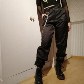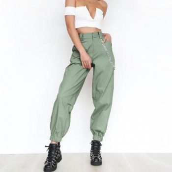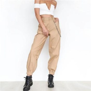 2018 summer thin cargo pants with chains women high waist ankle-length pants cool street female trousers casual khaki pants