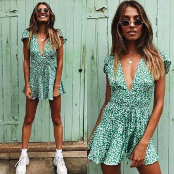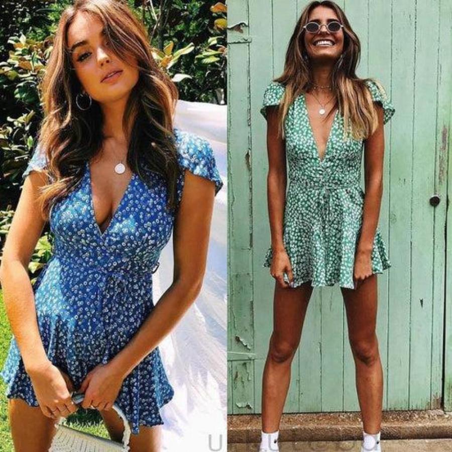 2019 fashion women dress ladies boho v-neck floral printing summer party evening beach short mini dresses ruffles sundress