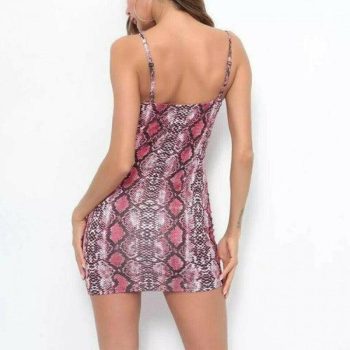 2019 Fashion Women Ladies Snake Printing Strap Mini Dress Sexy Sleeveless Bodycon Dress Casual Summer Beach Sundress