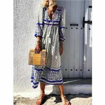 2019 fashion women summer boho long maxi dress ladies casual half sleeve v neck holiday party beach dress sundress