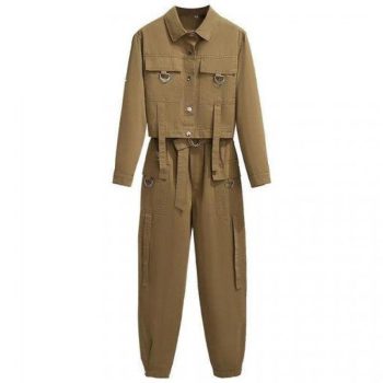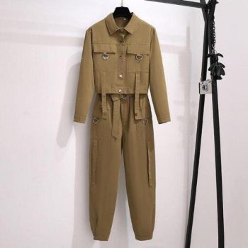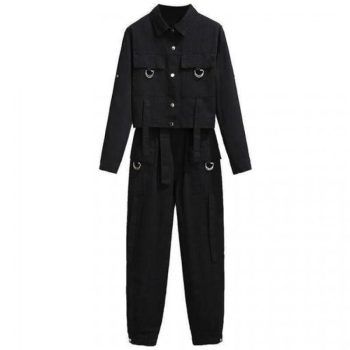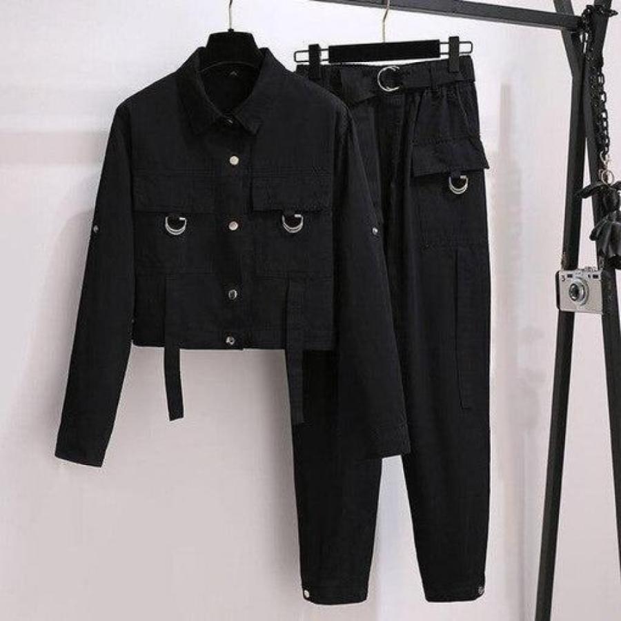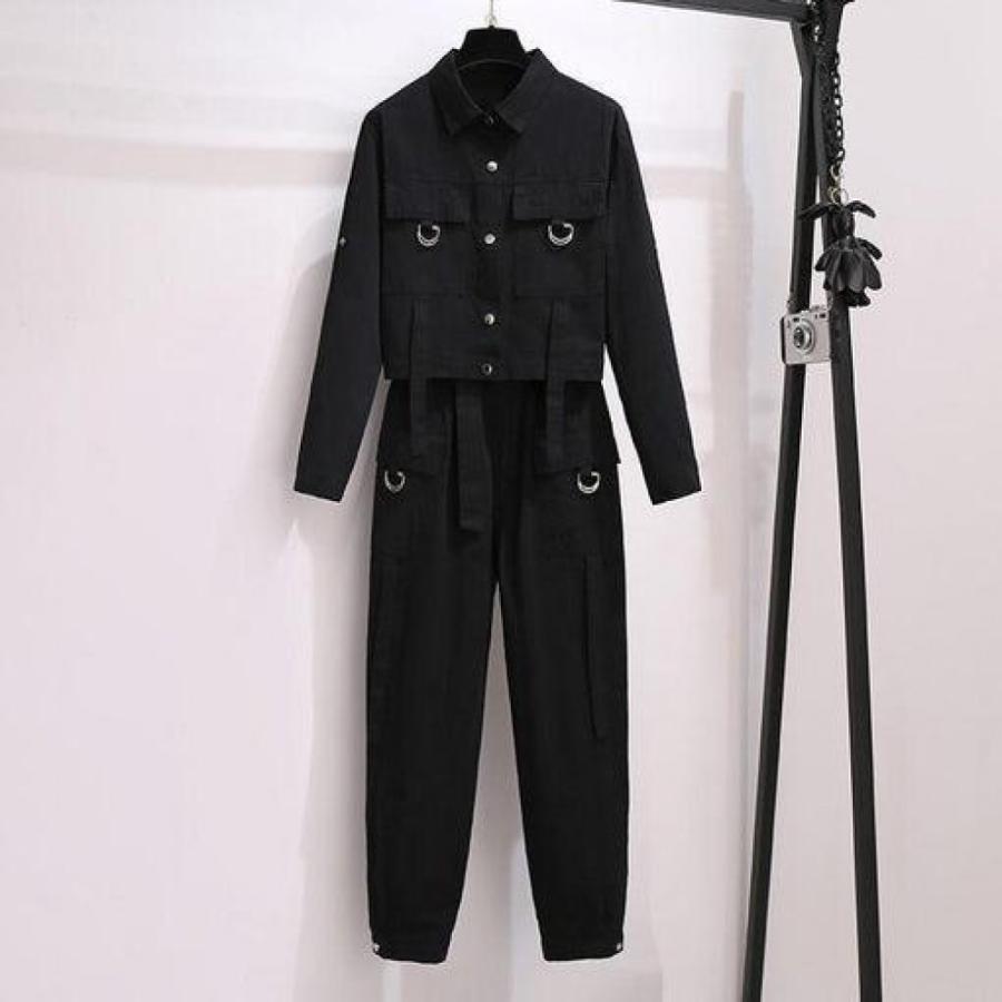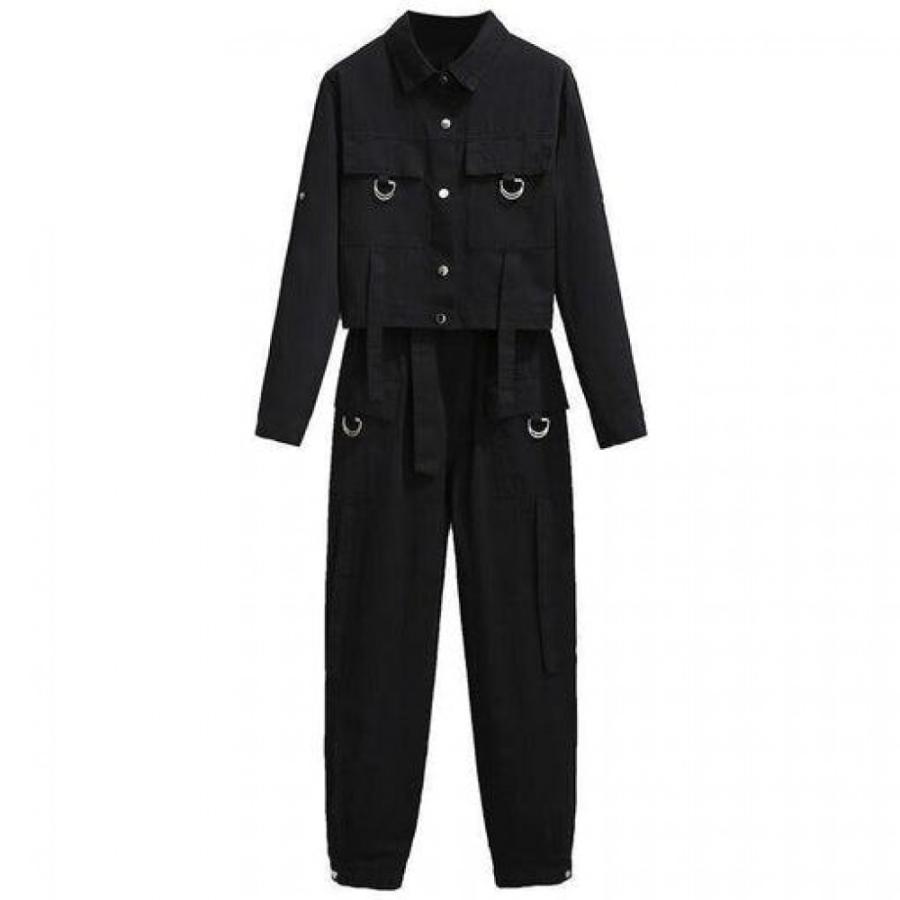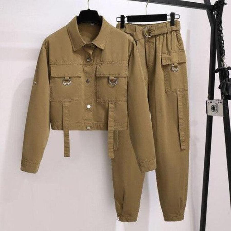2021 spring fashion streetwear cargo pants women 2 piece female short jacket + carrot jogging pants set outwear