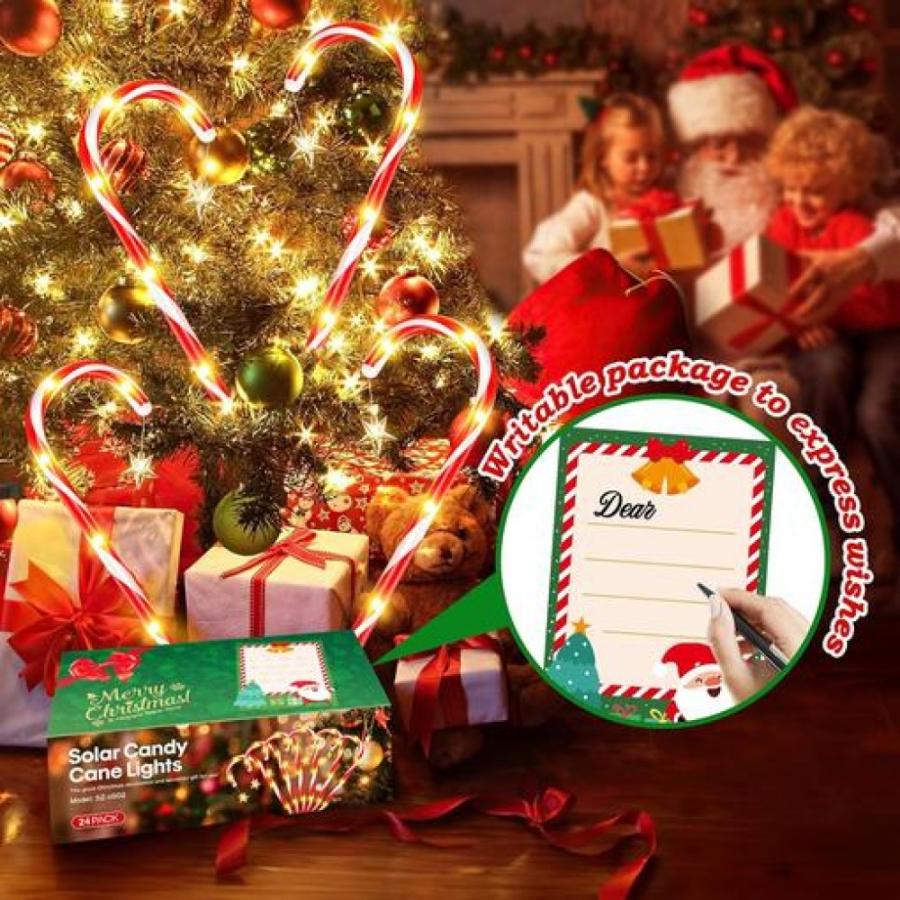 - Super Cute Christmas Decor Set – There are 2 sets inside the package, each containing 12 Pack, for a total of 24 pack with 2 independent solar panel. The candy cane lights outdoor pathway with 6 LEDs per candy cane light will shine brilliantly at night. Every unit is connected by durable copper wire, providing a total length of up to 28.22 feet. With 2 sets of candy cane Christmas decorations, you'll have endless possibilities for decorating your outdoor space.