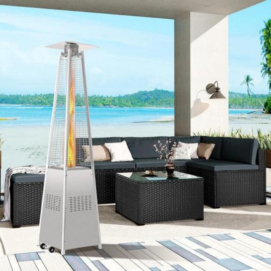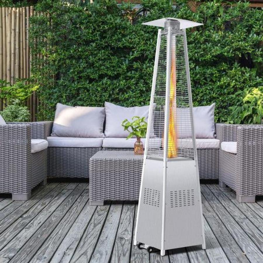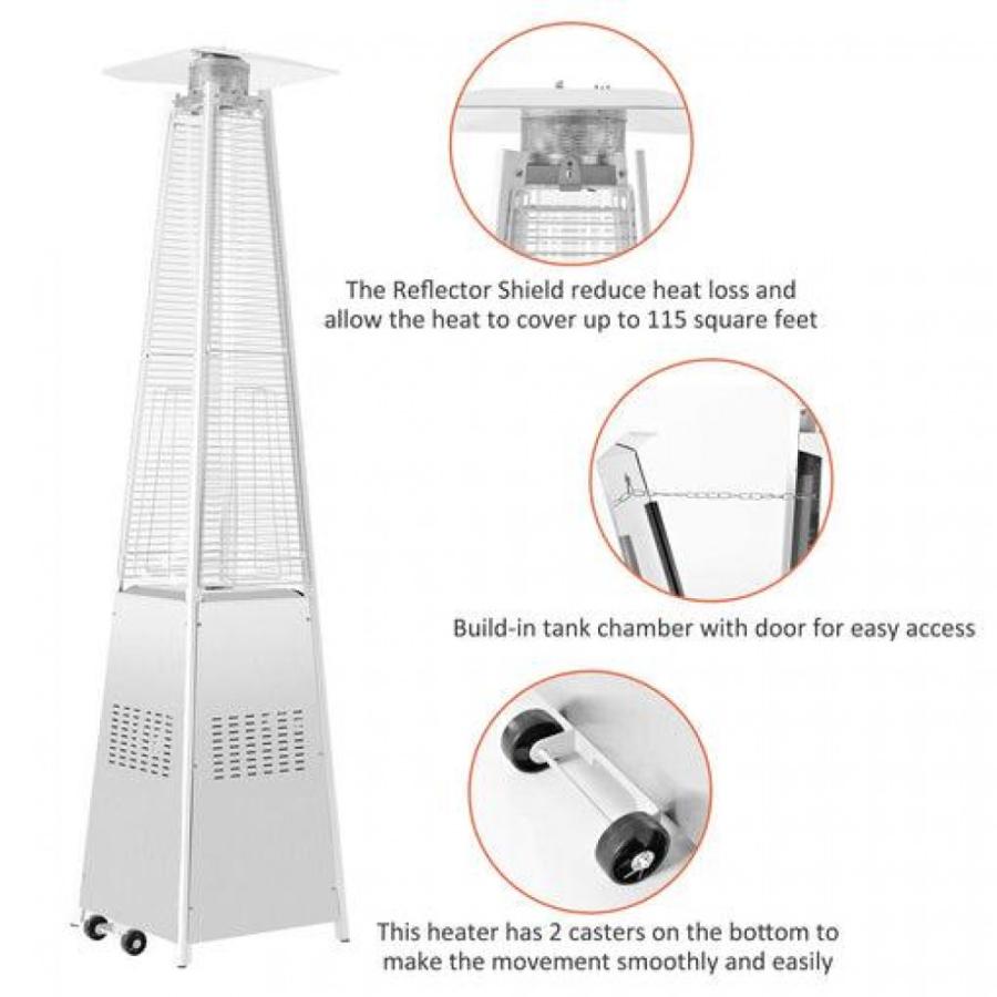 42000 BTUSteel Material Pyramid Glass Tube Flame Outdoor Heater with Long Strips of Flame with Aluminum Top Reflector Shield Heating Up to 115 Square feet