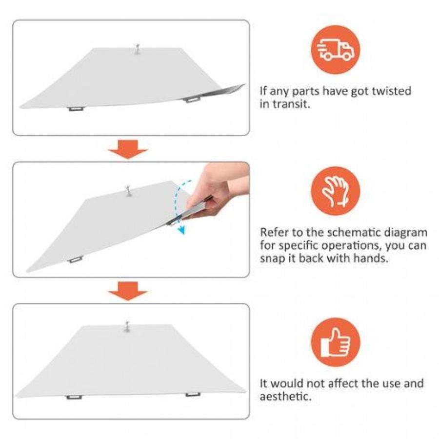The main material of this pyramid patio heater issteel, and some parts of this patio heater are made of aluminum and iron spray plastic. These materials have a certain flexibility, so users can snap them back with their hands if any parts have got twisted in transit. It would not affect the use and aesthetic. Users can refer to the schematic diagram for specific operations.
