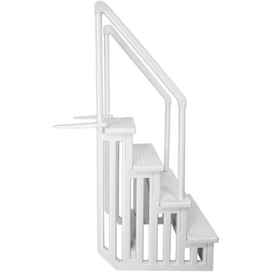 - ECONOMICAL AND STRONG – White durable frame with large, wide blue steps for high visibility in water. Able to hold up to 400 pounds. Fits Decks up to 60 inches