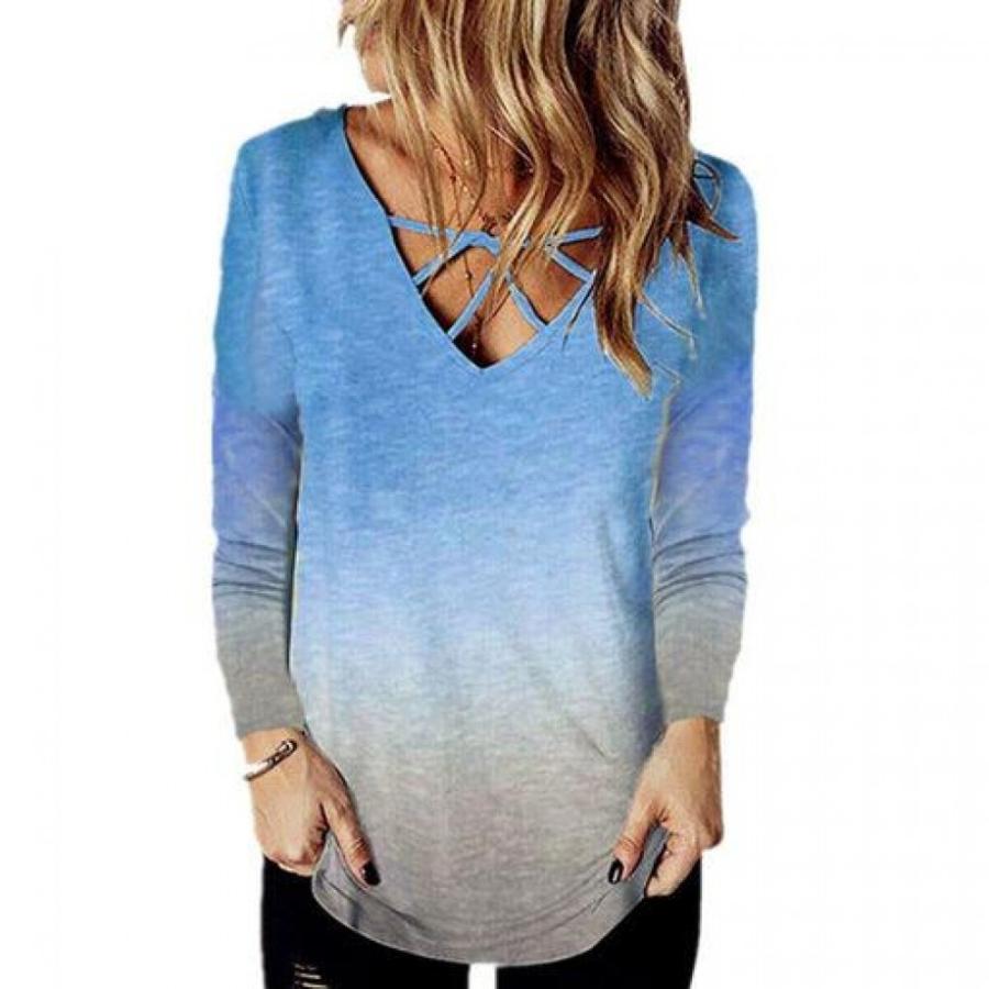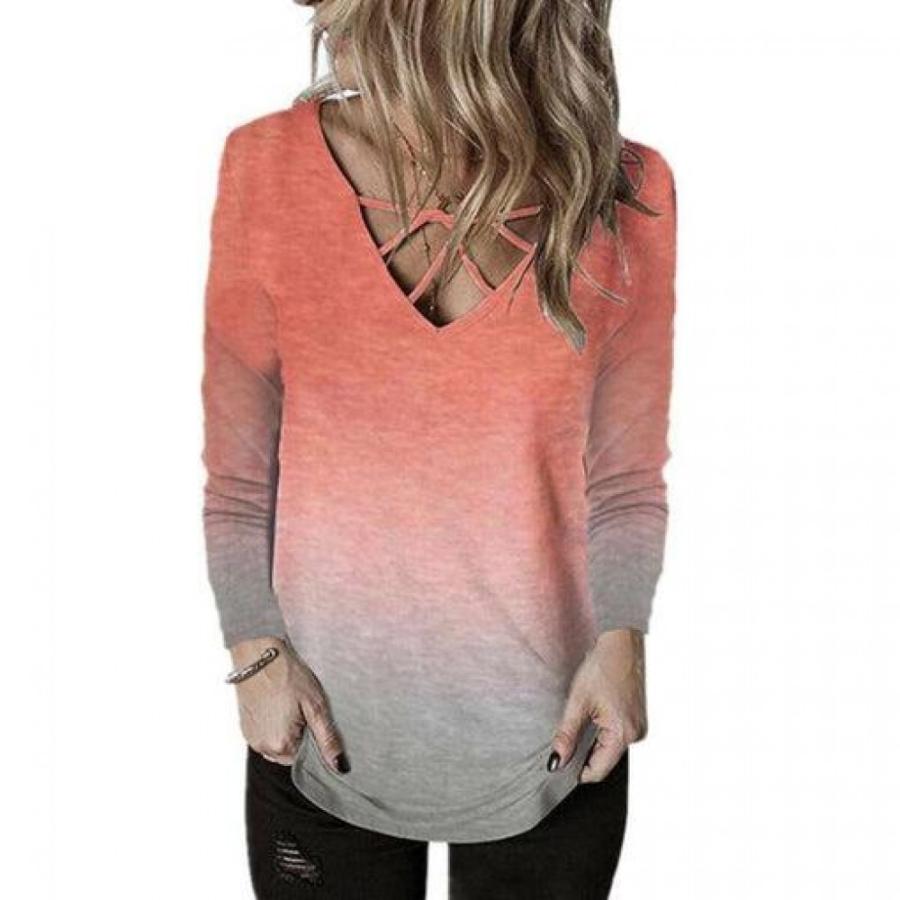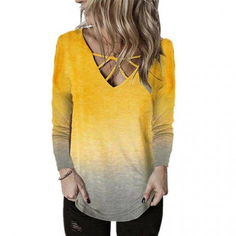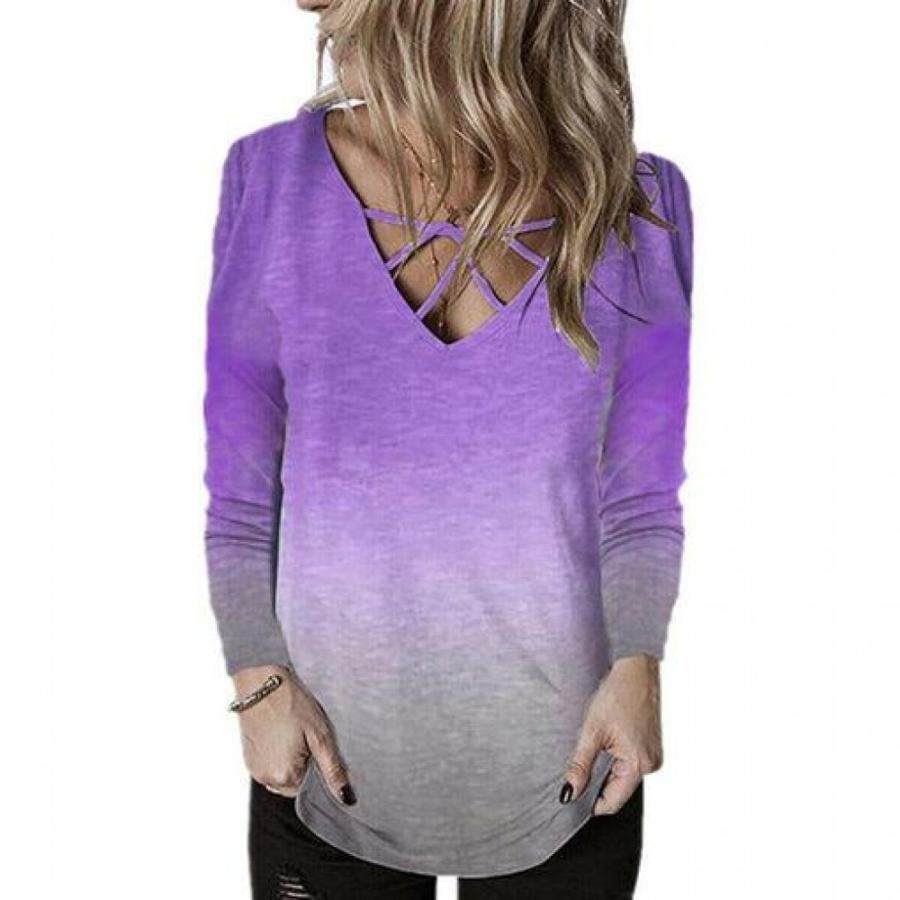 autumn women plus size long sleeve pullover t-shirt loose baggy ladies casual v neck tunic top jumper streetwear