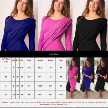 Elegant Women Ladies Long Sleeve Gown Dress Bodycon Wrap Casual Evening Party Wedding Ball Prom Maxi Dress