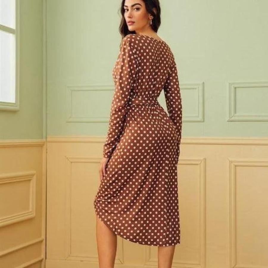 Fashion Polka Dot Dress Women Ladies V Neck L…