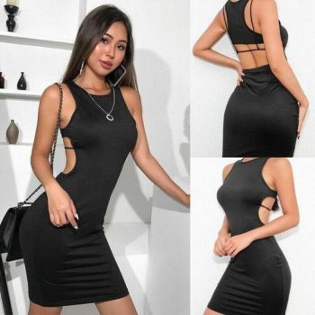 fashion sexy women backless strap sleeveless hollow package hip bodycon dress ladies summer slim solid casual dress sundress
