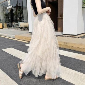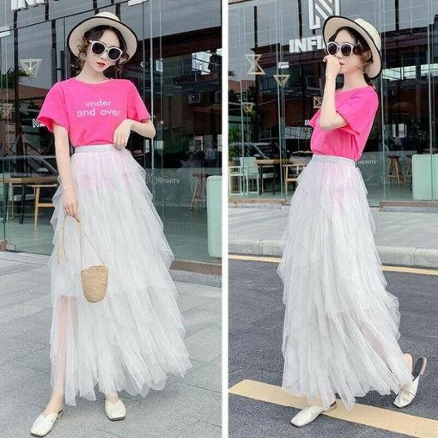 fashion summer women boho lace tiered high waist new beach long skirt sundress holiday travel solid casual skirt