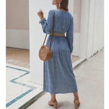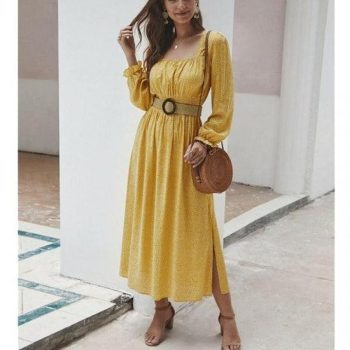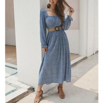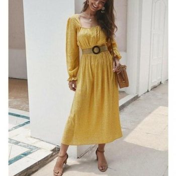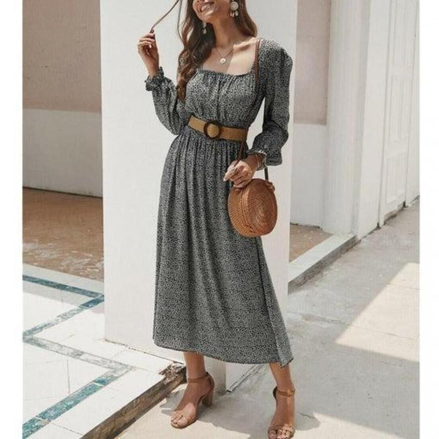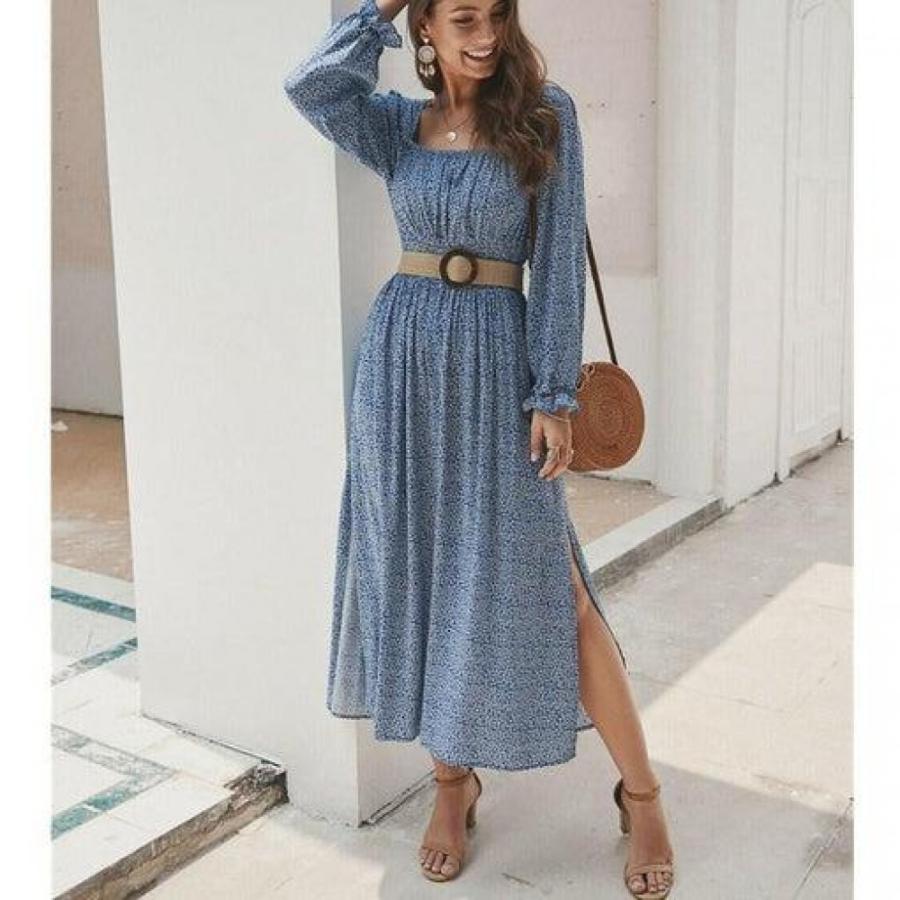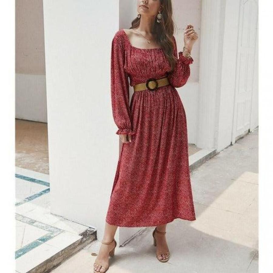 fashion trend women ladies long sleeve square neck autumn dress floral autumn pre-fall holiday long maxi dress