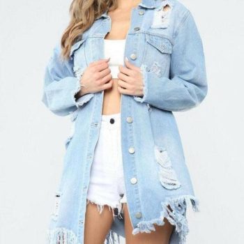 fashion women autumn winter top oversized holes ripped denim jacket coats ladies casual outwear streetwear plus size