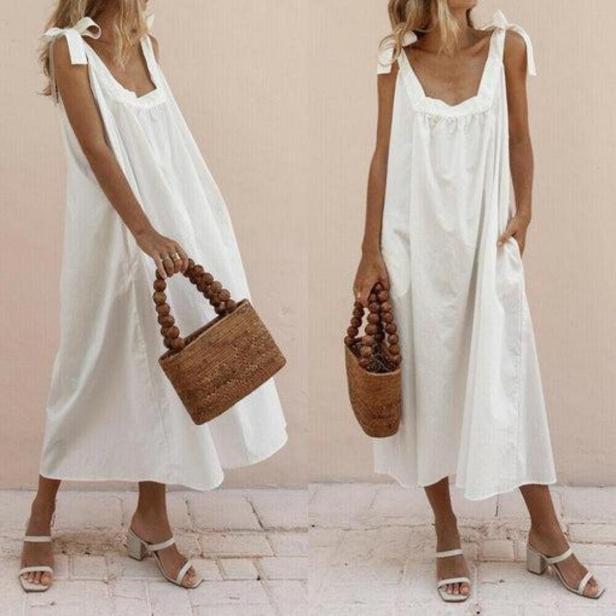 fashion women ladies summer boho holiday strappy floral long dress sleeveless casual loose party beach sundress new