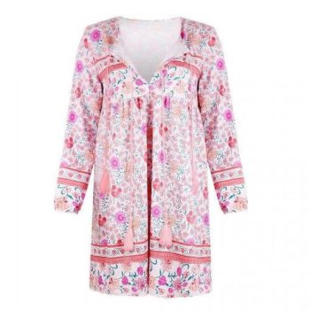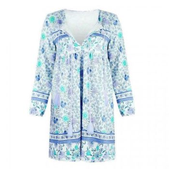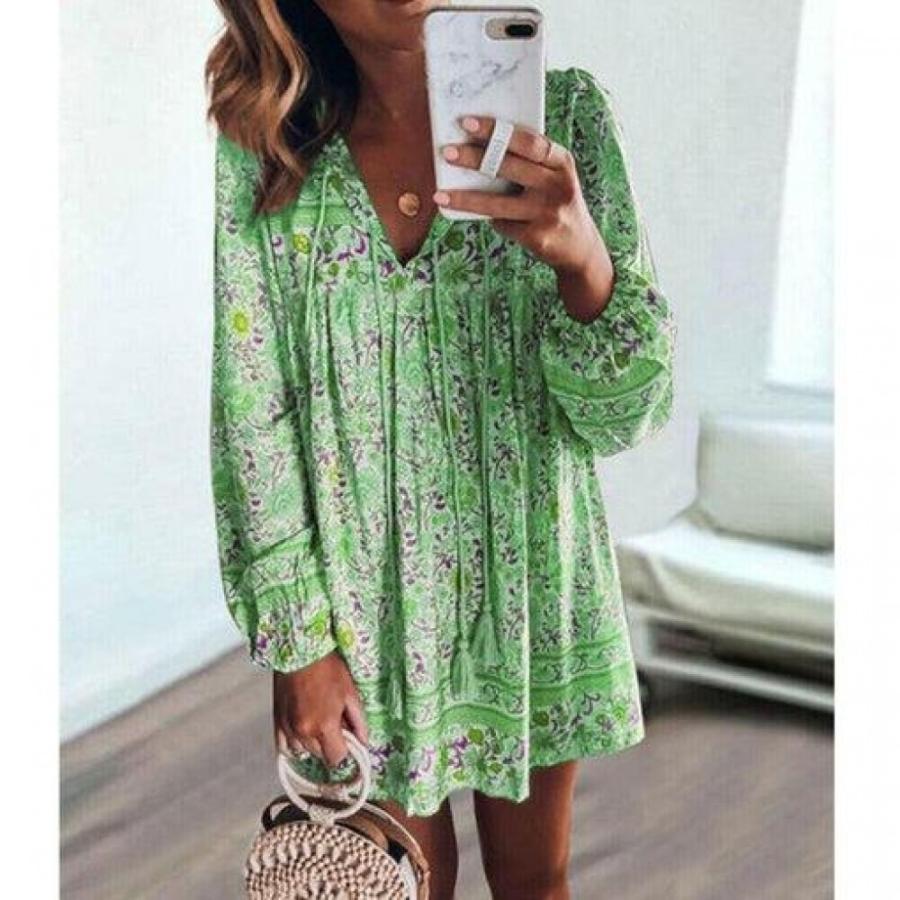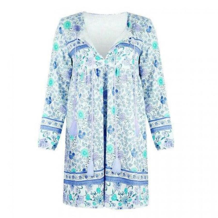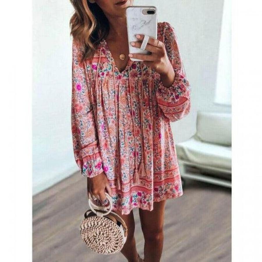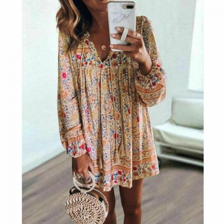 fashion women vintage boho loose dress bohemian ladies summer long sleeve baggy sundress beach holiday wear