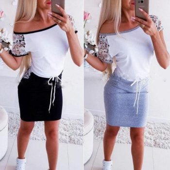 fashion women's lady summer lace short sleeve bodycon dress casual loose sundress tops mini t-shirt dress
