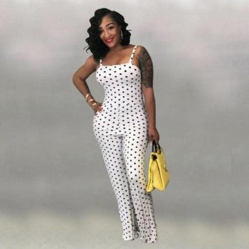 fashion women's playsuit ladies polka dot summer beach sleeveless romper wide leg long pant trouser holiday jumpsuits