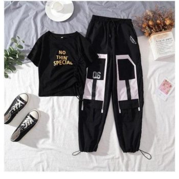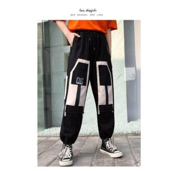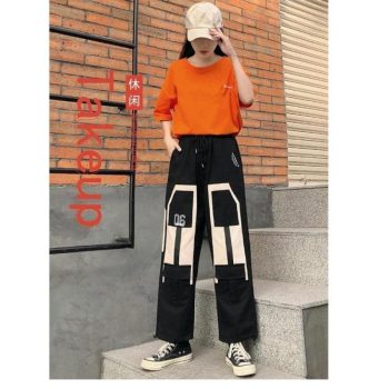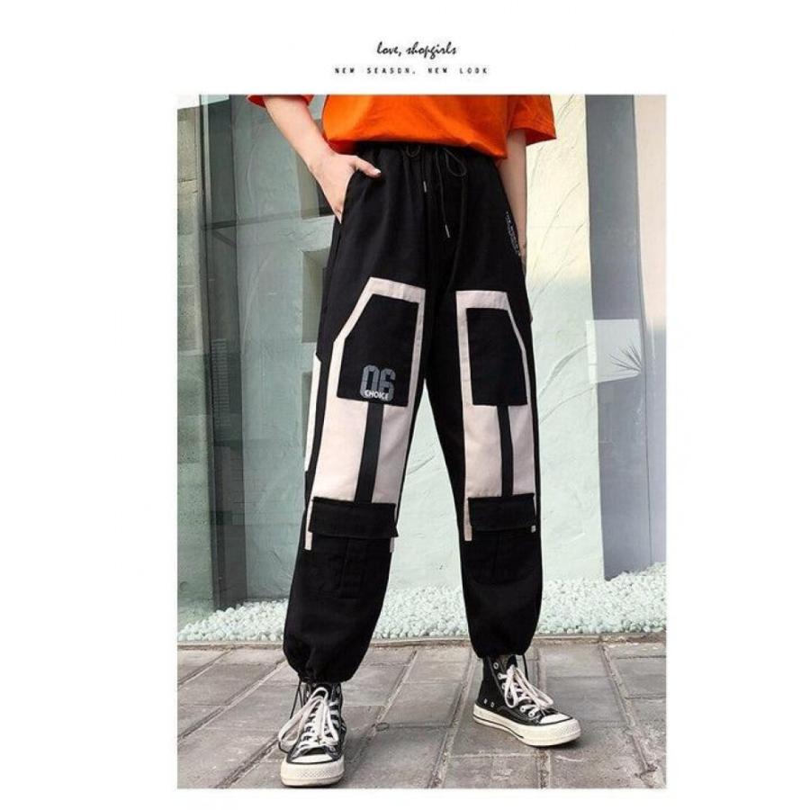 harajuku big pocket cargo pants women high waist streetwear wide leg casual pants women