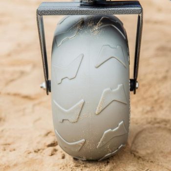 - Balloon Wheels: Sorin Outdoor balloon shaped inflatable wheels provide durable ability to move over all types of sand or uneven ground even the beach cart is fully loaded with important things. A week at the beach with your family can be painful: now towing your beach items doesn't have to be! Weight 32 lbs; Folded dimensions: 13 inches length 9 inches width x 32 inches height. Fully expanded 36 inches length x 18 inches width x 24 inches height. Each balloon wheel is 9 inches in diameter.