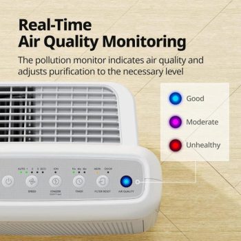 HEPA Air Purifier, Air Quality Monitoring, automatic mode, timer, Filter indicator, Eco mode