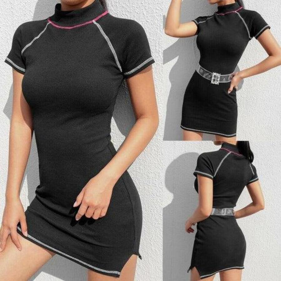 holiday irregular short sleeve summer boho dresses ladies casual high neck fit mini short sundress