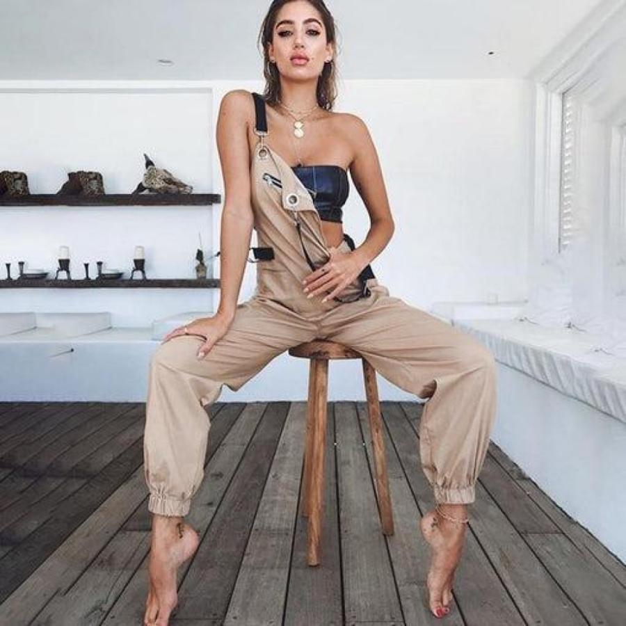 khaki high waist cargo pants overalls female summer casual sleeveless jumpsuits for women fashion street jumpsuit romper