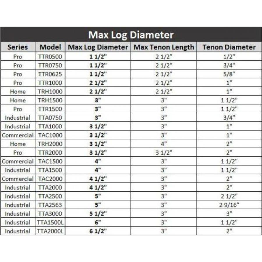 The Lumberjack Tools PSK5 Pro Series 5-Size Professional Kit enables you to build your own log furniture, achieving old world craftsmanship with today*s most advanced log cutting technology! The PSK5 kit includes the following cutters:TTR0500; TTR0750; TTR1000; TTR1500; and TTR2000, all of which create a radius shoulder profile.Each tenon cutter is paired with a correspondingly-sized Forstner bit.Also included is a 20-piece plan booklet. The quick stop pin system and in-sight measurement system allow you to cut the tenon to length without having to measure. Features include die cast aluminum body construction; a threaded shank that can be removed for replacement; a durable, powder coated finish; and dual blade technology.Blades can be replaced or re-sharpened.These bits are designed to be used with a 1/2∪ single-speed (450 RPM or less) drill (HD0500 [Milwaukee 1660-6]).All Lumberjack tenon cutters are made in the USA and come with a lifetime guarantee.