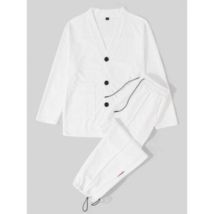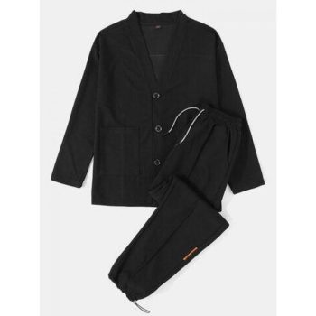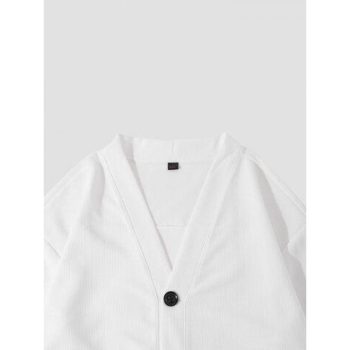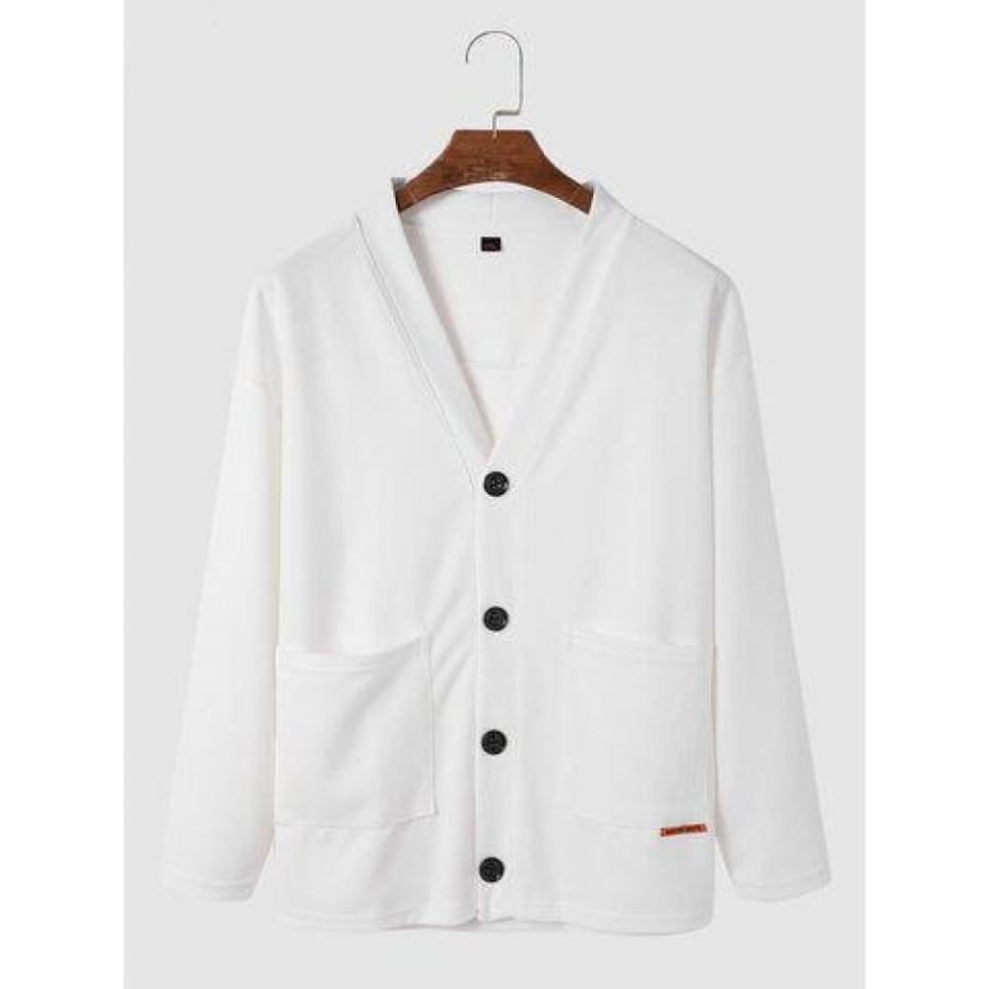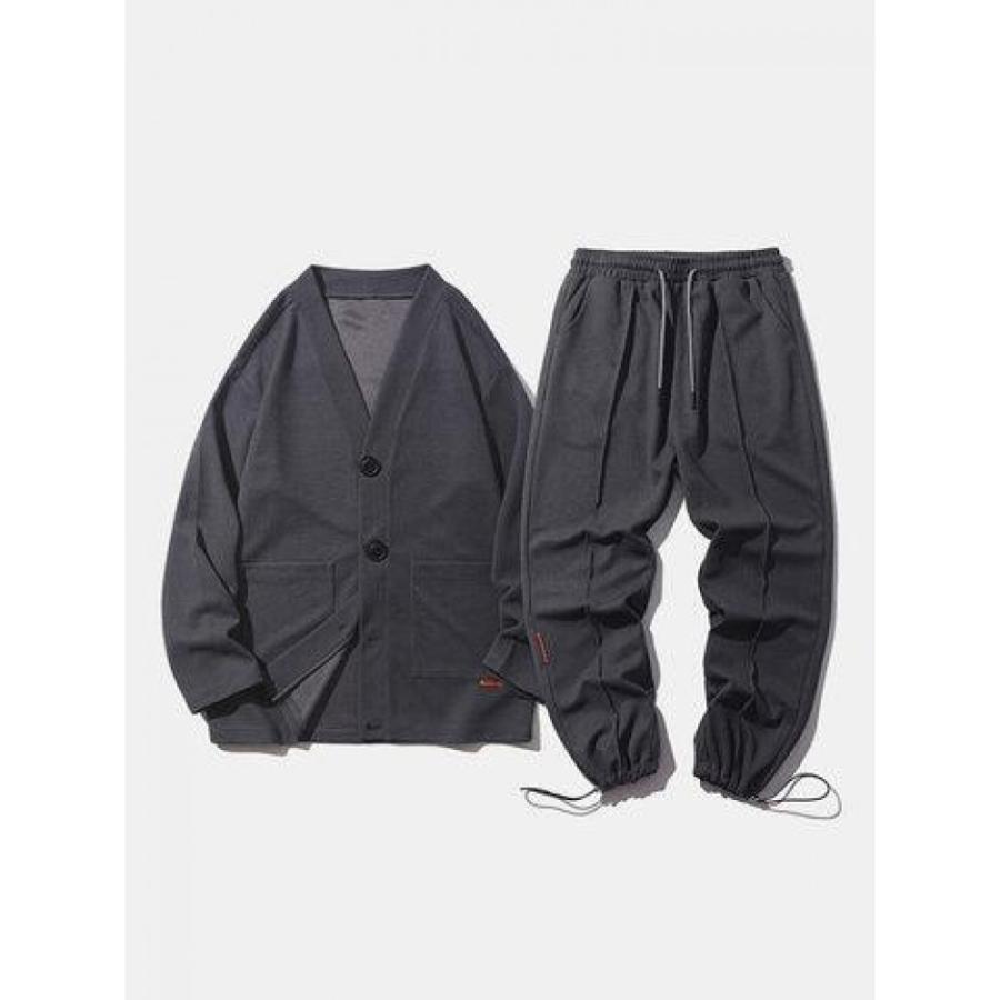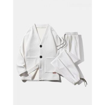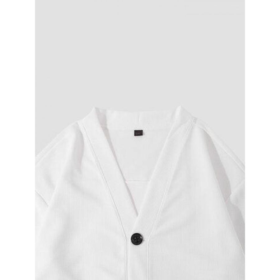 Mens Texture Solid Color Button Front Cardigan Basics Two Pieces Outfits