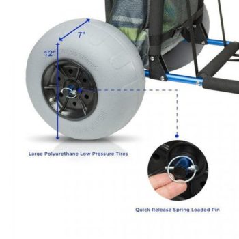 - Balloon tires pop off, cart folds & locks to store beach cart in small spaces