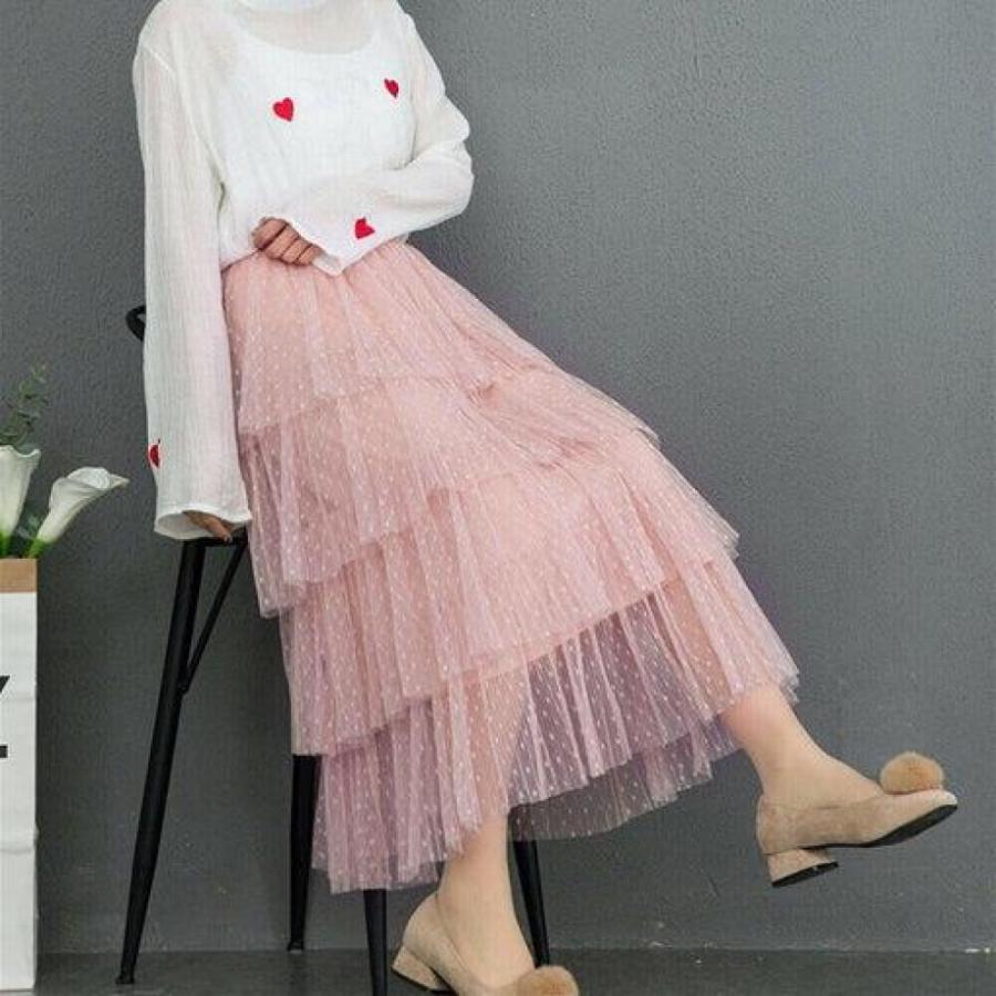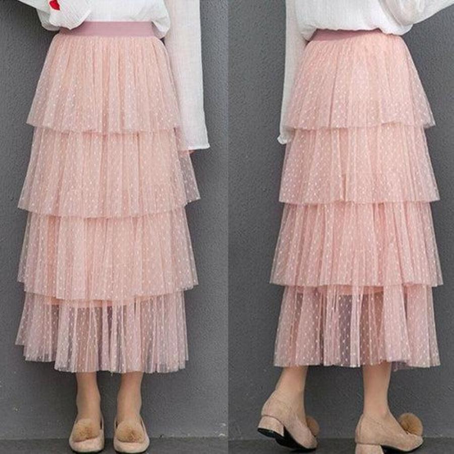 new fashion summer women dot lace tiered high waist beach long skirt sundress cake tulle skirt party ball gown