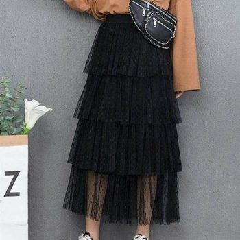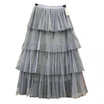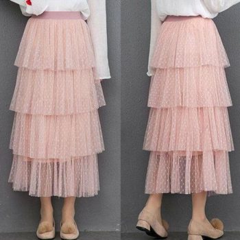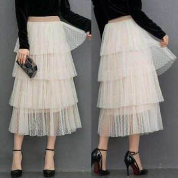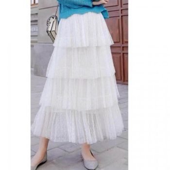 New Fashion Summer Women Dot Lace Tiered High Waist Beach Long Skirt Sundress Cake Tulle Skirt Party Ball Gown