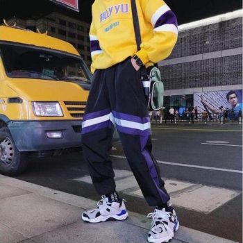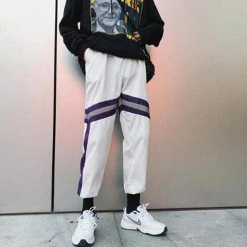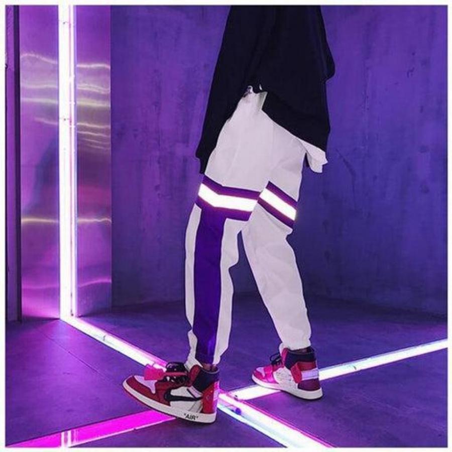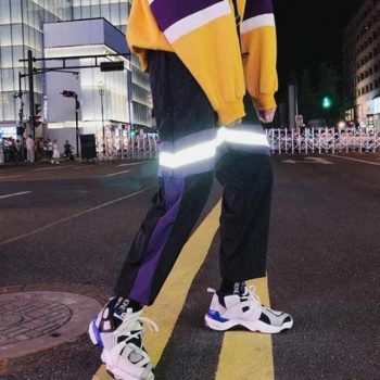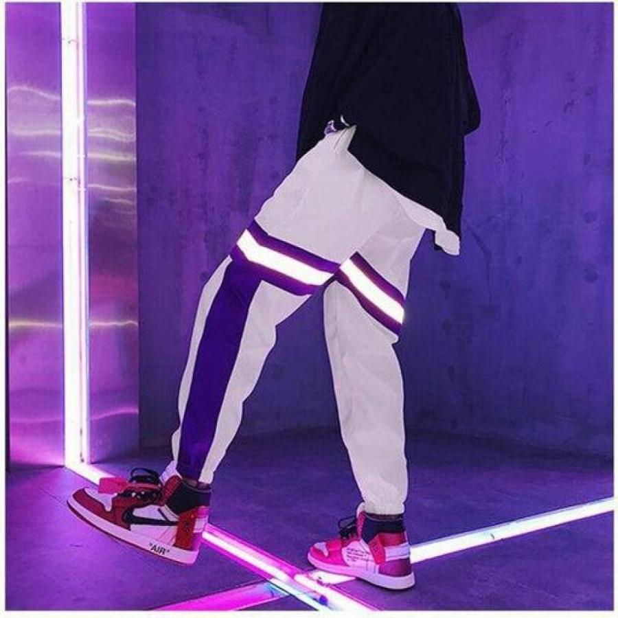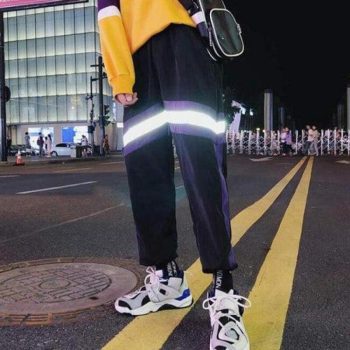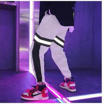new hip hop reflective pants harajuku casual black cargo pants women elastic high waist pants streetwear sweatpants jogger