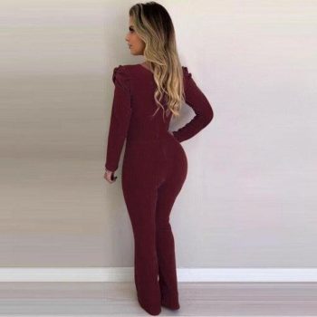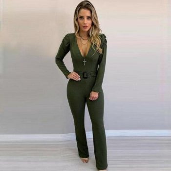 new hot women v neck bodycon jumpsuit loose wide leg pants suit playsuit autumn casual ol ladies workout jumpsuit clothes