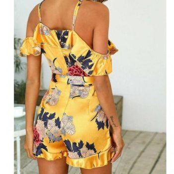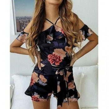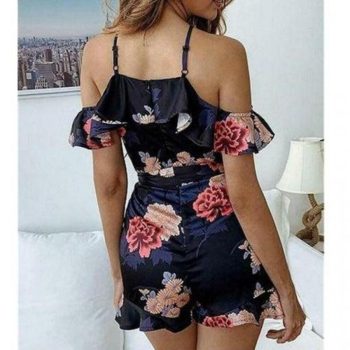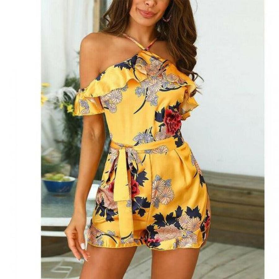 new women boho floral off shoulder jumpsuit ladies summer beach bodycon playsuit short pants trousers romper