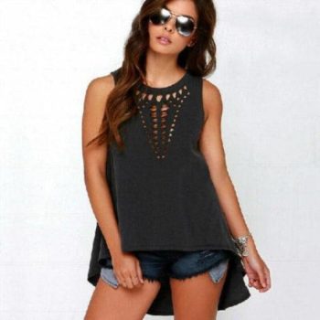 New Women Summer Casual Hollow Loose Vest Tops T-shirt arrival Sleeveless Blouse