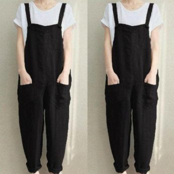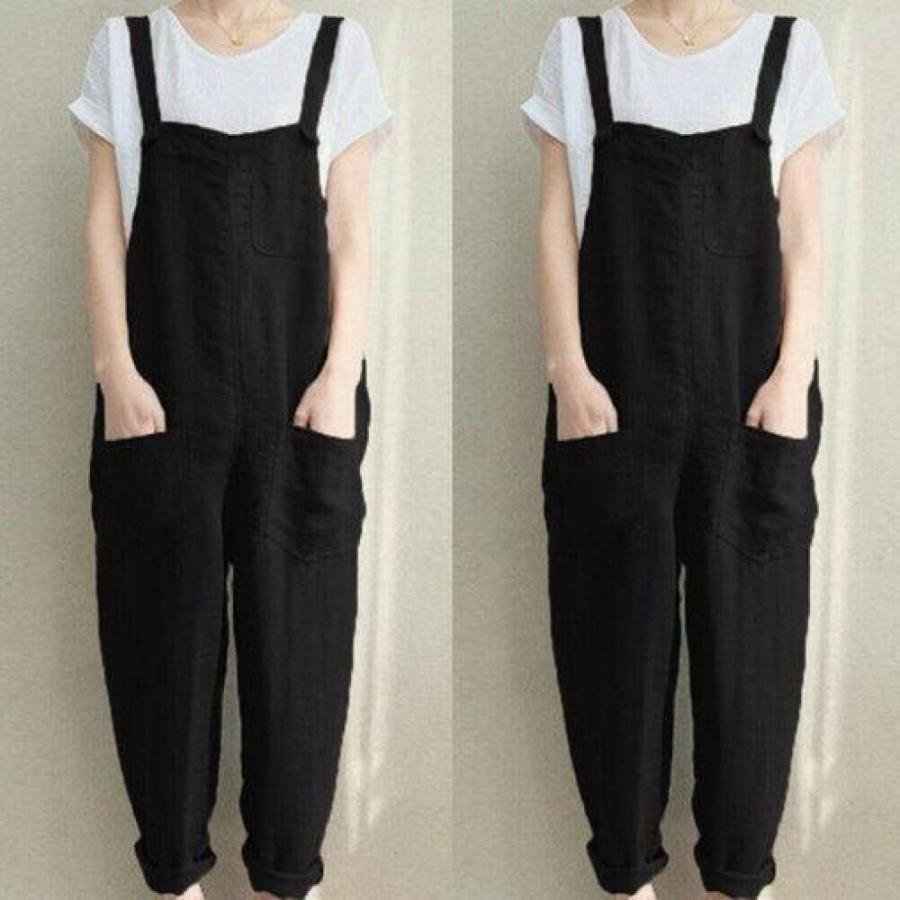 New Women Sleeveless Dungarees Summer Plus Size Rompers Jumpsuit Casual Loose Wide Leg Pants Overalls Playsuits