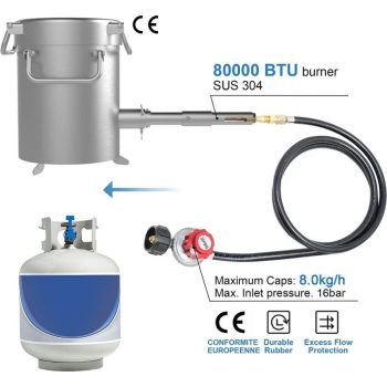 Propane Melting Furnace Kits, 6kg(13LB) Graphite Crucible, Up to 2372沈, Made ofSteel Barrel, Smelt Metal,with Goggles and High Temperature Gloves