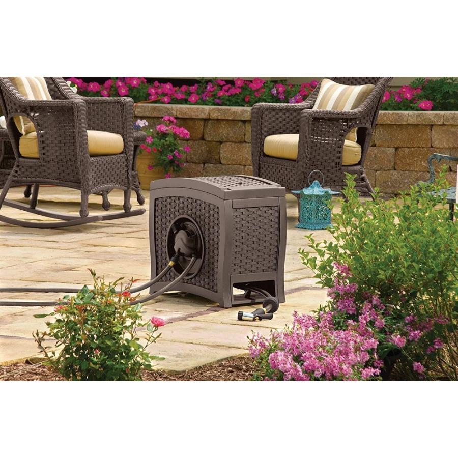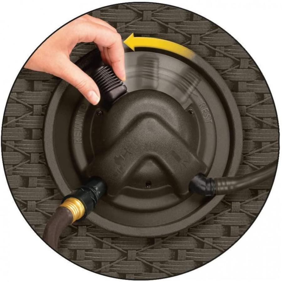 - AUTOMATIC HOSE REEL: Water-powered wicker garden hose reel uses Smart Trak to guide hose neatly into reel