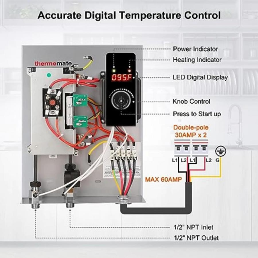- [Endless On Demand Hot Water] – Consistent hot water that never runs out when you need it. Continuously detect water temperature and flow rate to ensure efficient heating and stable performance within 1°F of your selected temperature. REQUIRES 2 SET of Double-pole 30AMP Breakers
