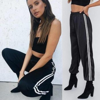 Fashion Women Pants Side Striped Loose Drawstring Elastic High Waist Slim Pencil Ladies Casual Long Trouser