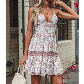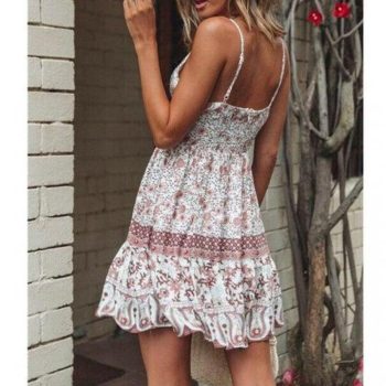 Fashion Women Summer Boho Short Mini Dress Party Ladies Casual Sleeveless V Neck Beach Dress Sundress