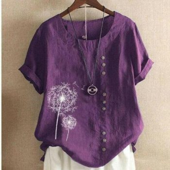 Fashion Women Summer Short Sleeve T Shirt Ladies Loose Casual Solid Top Dandelion Print Tee Shirt Femme Ladies Tshirt Plus Size