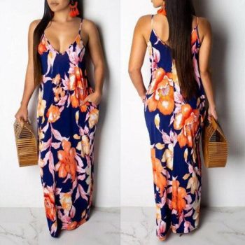 Fashion Women's Maxi Long Boho Dress Hot V Neck Sleeveless New Floral Summer Beach Cocktail Party Loose Sundress
