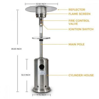 Kunerensteel Propane Patio Heater For Dinner Party , Family Gathering , Garden , Backyard , Restaurant , Coffee Shop , Schools