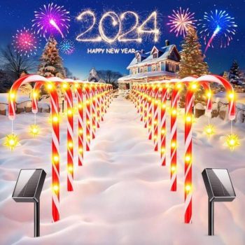 24 Pack Christmas Decorations Outside, 2 Sets Of 12 Kooper 19” Solar Candy Cane Christmas Decorations Outdoor Yard With 8 Modes And 144 Bright Led, Waterproof Christmas Candy Cane Pathway Lights