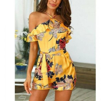 New Women Boho Floral Off Shoulder Jumpsuit Ladies Summer Beach Bodycon Playsuit Short Pants Trousers Romper