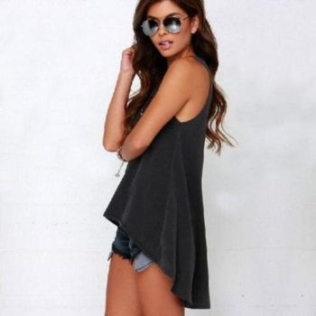 New Women Ladies Black Hollow Out Sleeveless T-Shirts Solid Tops Summer Loose T-Shirts Plus Size