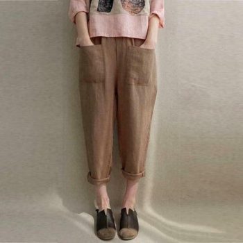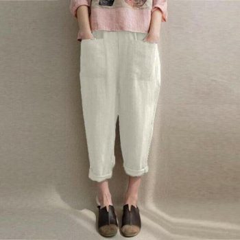 New Women Ladies Casual Loose High Waist Long Pants Linen Cotton Elastic Trouser Female Summer Casual Loose Trouser